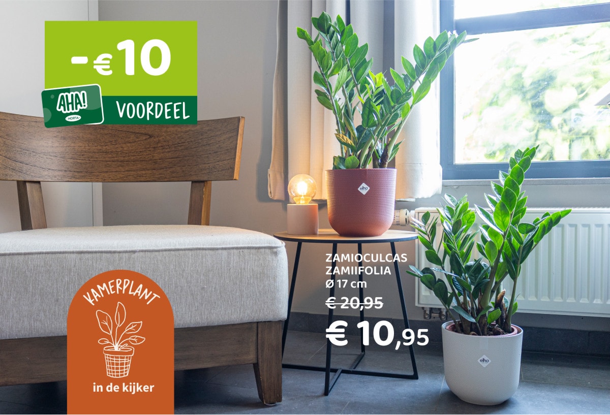 Dankzij je AHA!-kaart geniet je nu van € 10 voordeel* op deze prachtige kamerplant! En dat is nog niet alles: bij aankoop van onze kamerplant in de kijker krijg je er een gratis zak DCM potgrond (10 l) voor kamerplanten bovenop.*