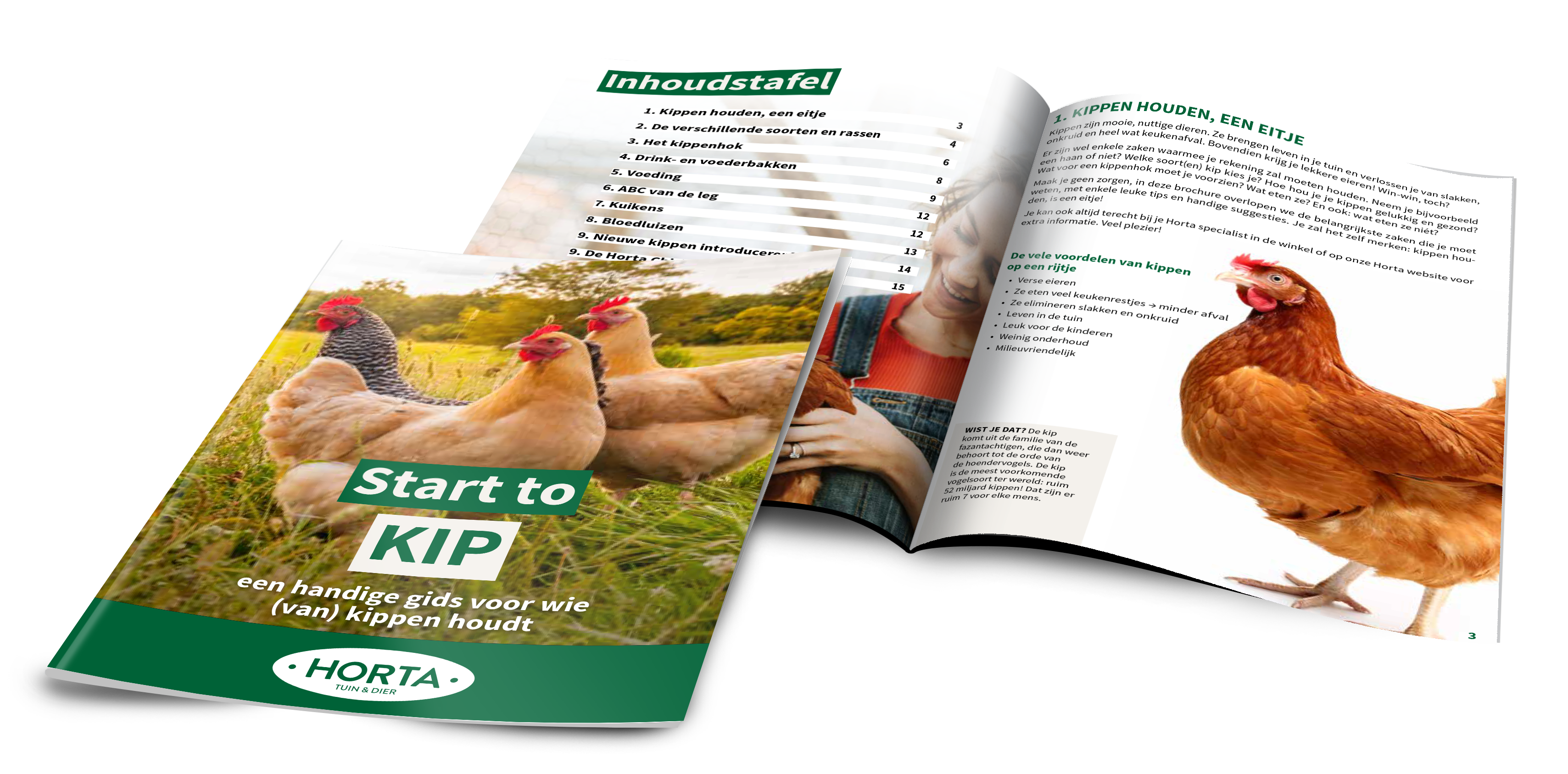 Op zoek naar nog meer tips en advies voor de verzorging van je kippen? Download hier je gratis brochure 'Start to Kip'! Zo heb je alle informatie makkelijk bij de hand. Veel plezier!