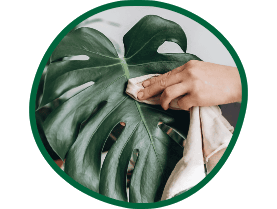 Veeg de bladeren regelmatig af met een vochtige doek om eventueel stof te verwijderen. Dit versterkt de fotosynthese en zo behoudt de plant haar glanzende look.