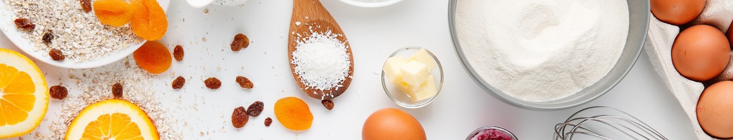 1. Bloem en meel 2. Rijsmiddelen 3. Zout 4. Suiker 5. Vetstoffen 6. Ei en/of zuivel 7. Extra smaakmakers 8. Accessoires