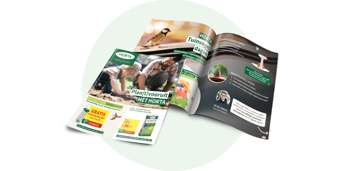 Tijdens de Horta Tuinvogeldagen is er ook een digitale folder helemaal in het teken van onze tuinvogelfdeling! Daarin vind je een heleboel mooie promoties, leuke producten en handige tips. Handig, toch?