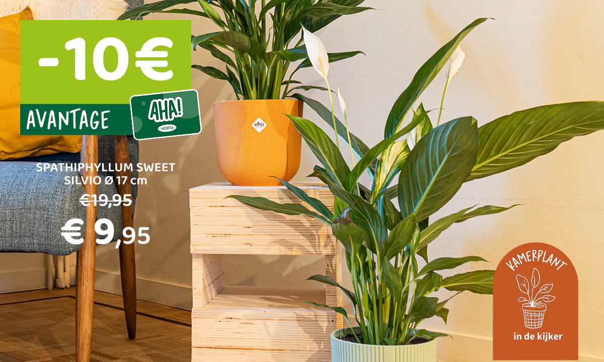 Le spathiphyllum Sweet Silvio (fleur de lune) est une plante d’intérieur robuste et dépolluante, au feuillage vert brillant et aux élégantes fleurs blanches… et disponible dès maintenant dans votre magasin Horta avec 10 € DE RÉDUCTION !