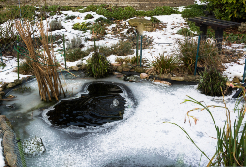 Pendant l'hiver, votre étang entre dans une sorte de mode de dormance. Les poissons hibernent et les plantes de bassin passent en mode hiver. Pour ne pas perturber cette période de dormance, il est préférable de ne pas toucher à votre étang.