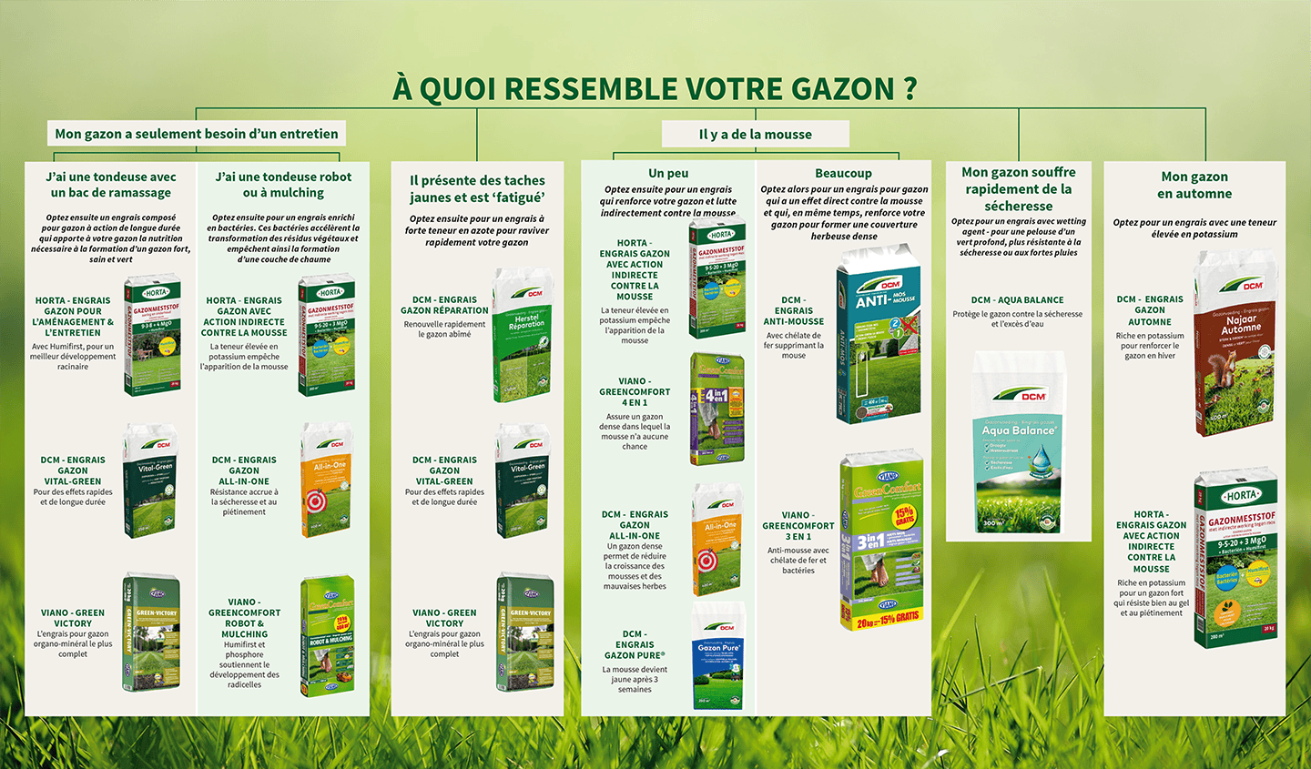 Conseil ! Fertilisez votre pelouse plusieurs fois par an et à petites doses, pour ne laisser aucune chance aux mauvaises herbes et à la mousse. Une règle simple : 5 x 0,5 kg. Cela revient à 0,5 kg/10m² 5 fois par an.