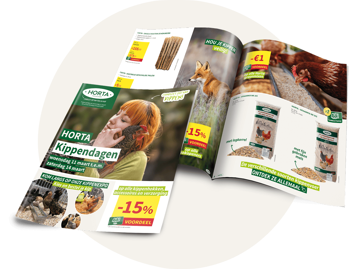Pendant les Journées Horta de la poule, il y a aussi une brochure digitale entièrement dédiée à notre section poules ! Vous y trouverez de nombreuses promotions intéressantes, des produits sympas et des astuces pratiques. Pratique, non ?