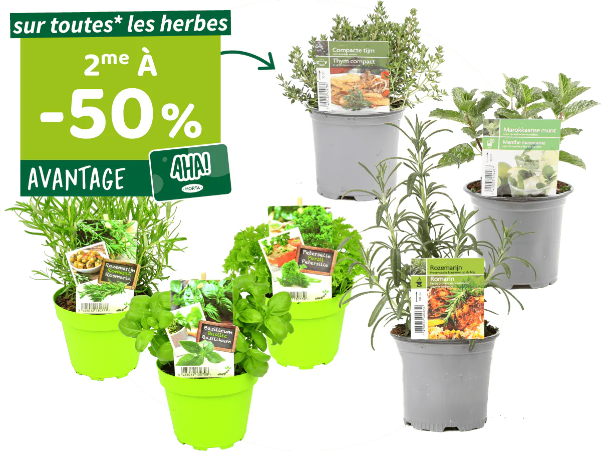 Il est facile de cultiver soi-même des herbes aromatiques ! Vous n'avez pas besoin de beaucoup d'espace, le choix est vaste et les herbes sont idéales pour utiliser en cuisine. Autant de raisons de venir aux Journées Horta des herbes aromatiques ! Du mercredi 9 au samedi 19 avril inclus, votre magasin Horta vous invite à découvrir l'univers des herbes pendant dix jours.