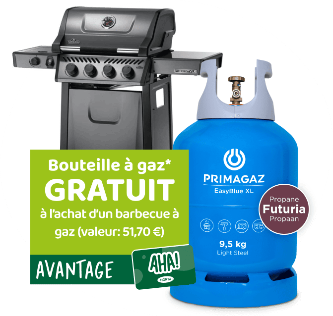 Lors des Journées Horta du barbecue, profitez d'une offre spéciale ! Du 21 au 24 mai 2025 inclus, achetez un barbecue à gaz dans votre magasin Horta et recevez une BOUTEILLE DE GAZ GRATUITE (Primagaz EasyBlue™ XL) d'une valeur de 51,70 €. Tout cela grâce à votre carte AHA ! Alors, gardez-la à portée de main !"