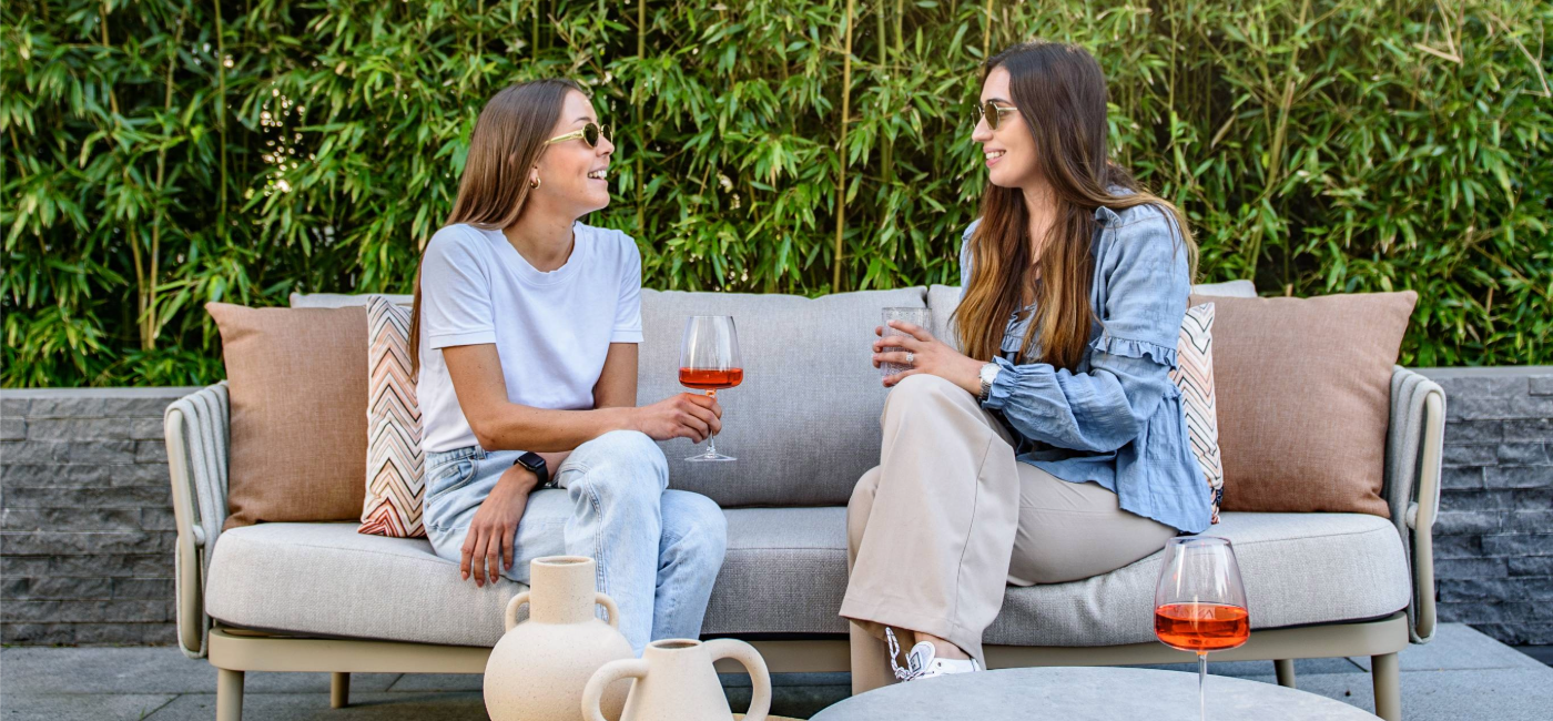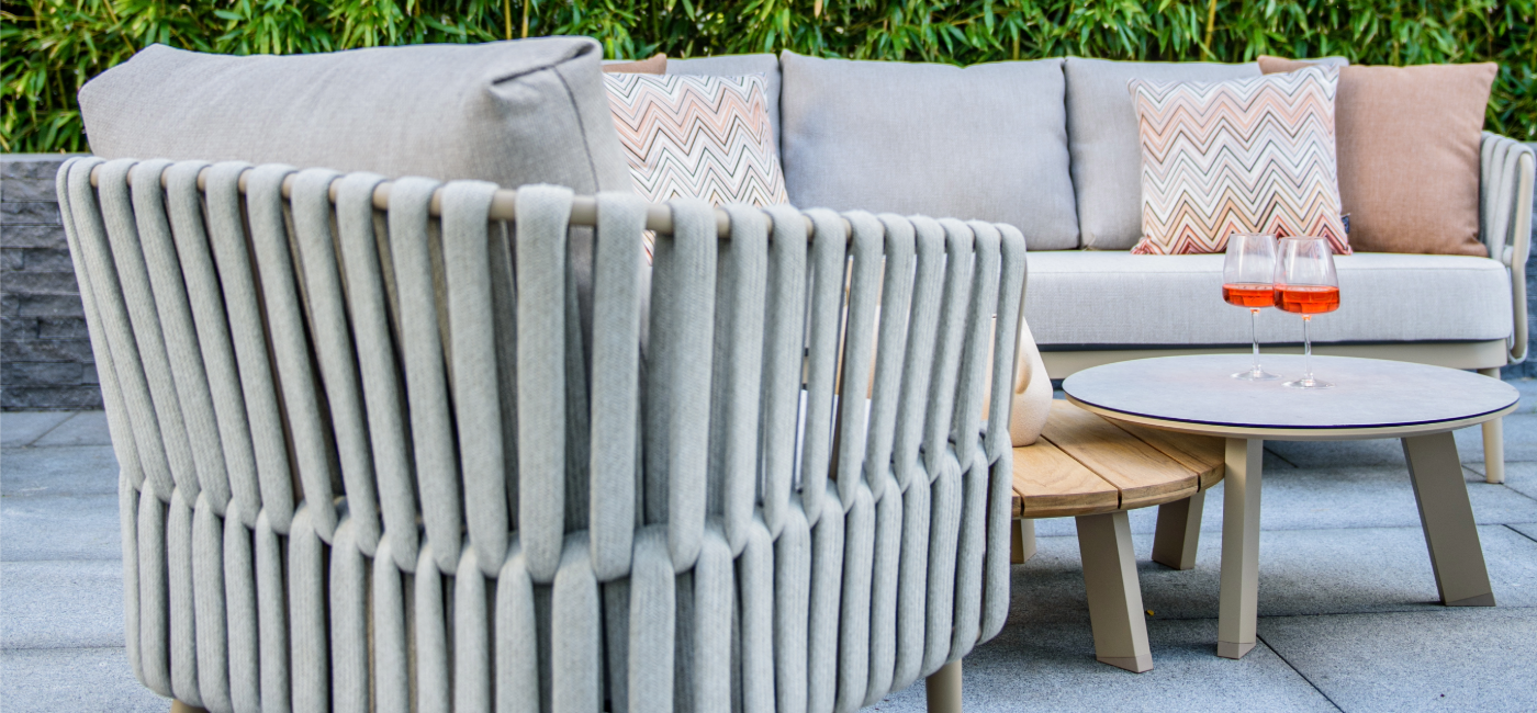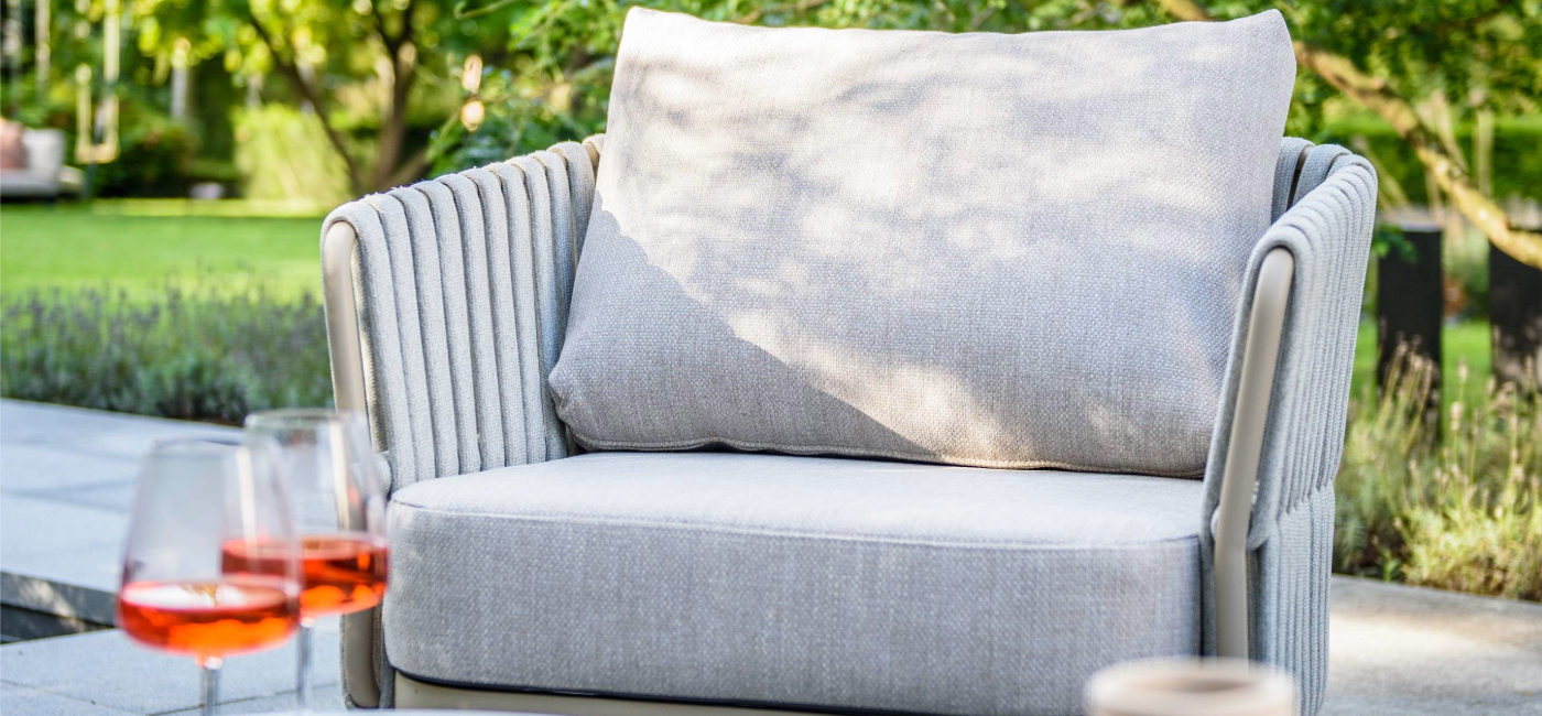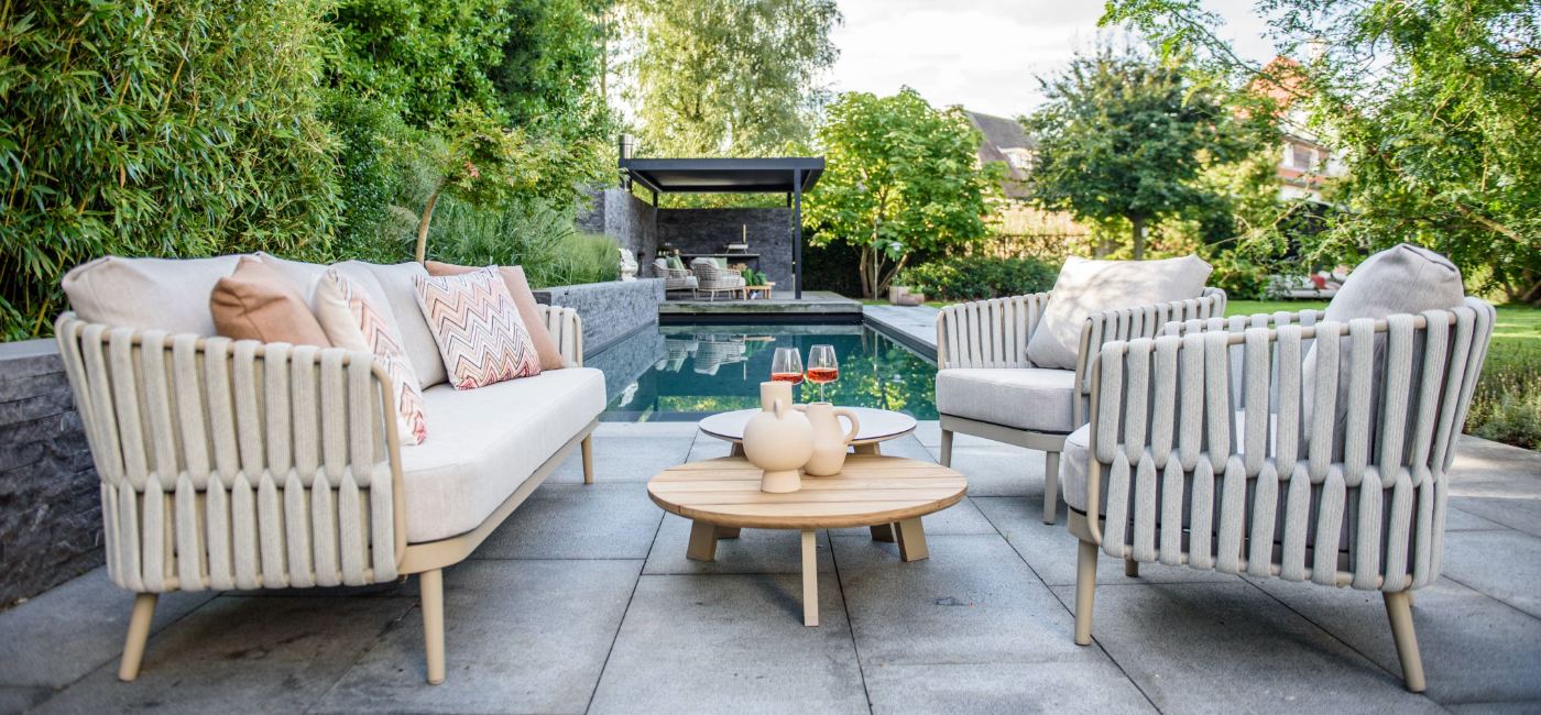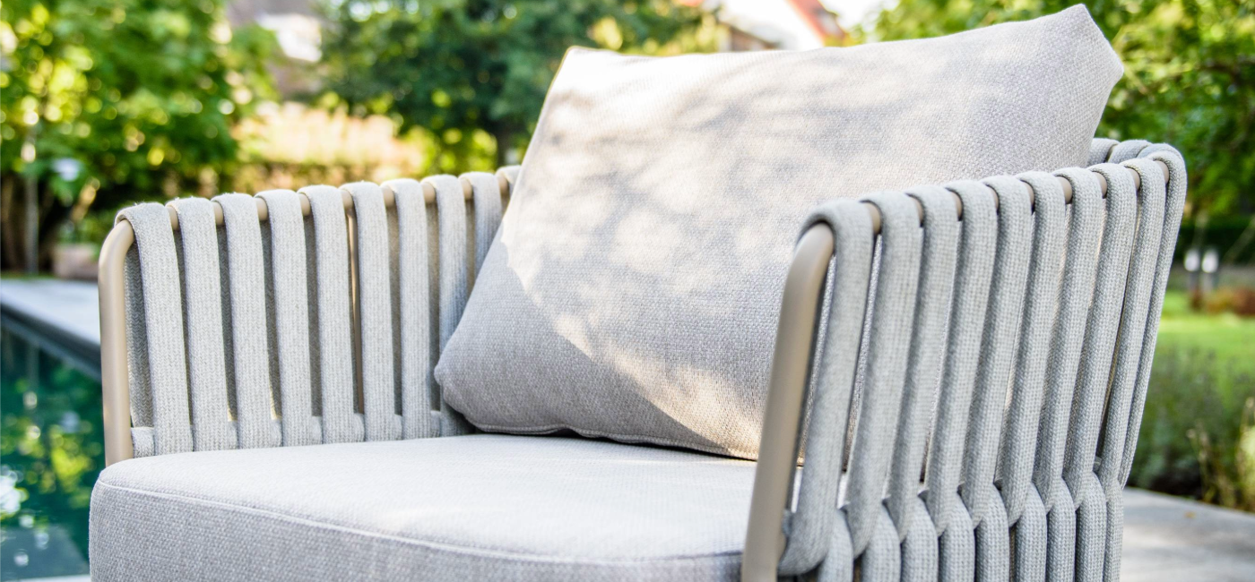 Découvrez le salon Eva au design moderne. L'ensemble est livré avec des coussins moelleux et présente un cadre en aluminium contemporain avec une garniture en corde latte assortie. La corde épaisse se marie parfaitement avec le cadre latte et, associée aux coussins, offre un confort d'assise optimal. La couleur peut être décrite comme un beige élégant. Le salon Eva se compose d'un canapé 3 places et de deux fauteuils de salon.