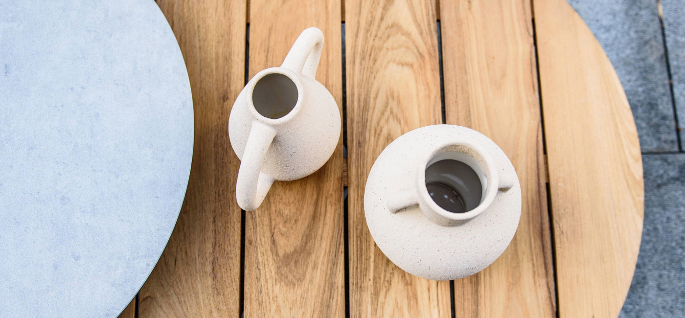 La table basse Emma est une belle combinaison de deux tables basses de différentes hauteurs et avec des plateaux différents. Le piétement des tables basses Emma se compose de trois pieds en aluminium disposés de l'intérieur vers l'extérieur. La belle couleur latte confère aux tables basses une ambiance chaleureuse. La table de 80 ø cm est dotée d'un plateau en teck et la plus petite table de 65 ø cm d'un magnifique plateau en céramique.