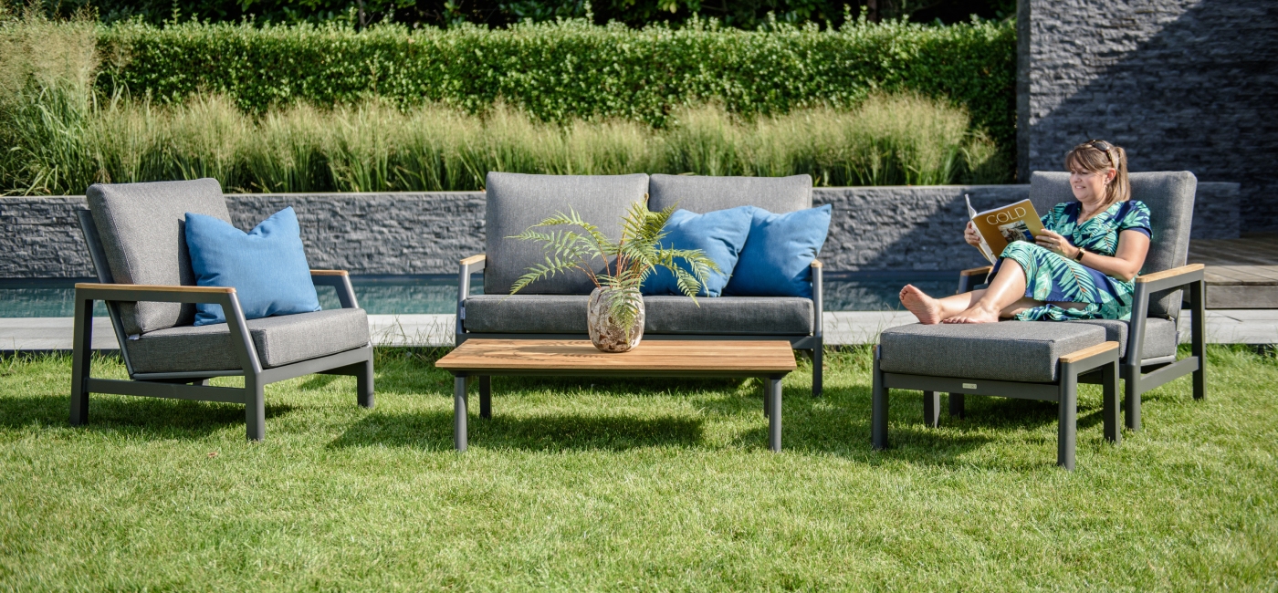 La série de salons Ravenna apporte une touche de style contemporain à pratiquement tous les jardins. Grâce à son agencement modulaire, ce salon peut facilement être adapté à l'espace disponible dans votre jardin, vous offrant ainsi toute la liberté pour créer votre configuration idéale. Les accoudoirs en teck donnent à l'ensemble une belle finition. Le dossier et l'assise en textileen offrent une expérience d'assise exceptionnellement confortable. La série Ravenna est dotée d'un dossier haut qui offre un soutien supplémentaire à votre dos et à vos épaules. Les coussins tout temps sont résistants à l'eau et à la saleté, ce qui les rend parfaits pour une utilisation en extérieur.