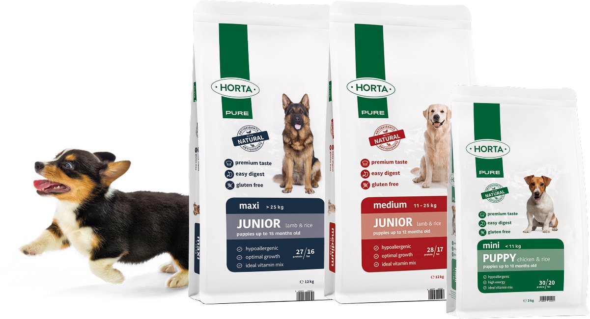 Horta PURE is Belgische premium hondenvoeding, samengesteld door onze Horta-experten om aan alle voedingsbehoeften van je hond te voldoen. Gemaakt van de beste ingrediënten en met een 100% tevredenheidsgarantie. Zo overtuigd zijn we van de kwaliteit en meerwaarde van Horta PURE. De filosofie van Horta PURE en al onze hondenvoeding-recepten steunen dan ook op deze drie essentiële voedingspijlers.