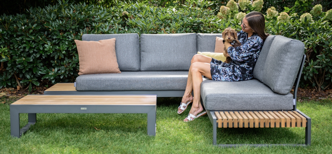 Laat de zon opkomen. De Kioto loungeset laat zien dat teak latten in japanse stijl helemaal van nu zijn. Je ziet dit terug in de platformdelen en de bijpassende salontafel. De comfortabele kussens laten je relaxen als een keizer.